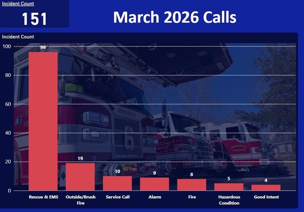 March was another busy month for Seven Hills Fire District, with our members responding to 151 calls for service throughout the community
